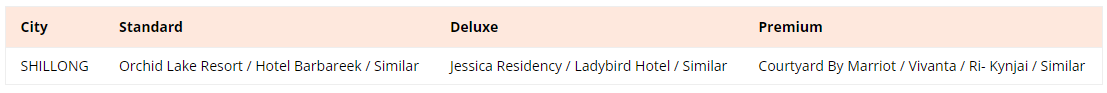 GUWAHATI AIRPORT / GUWAHATI STATION– SHILLONG (4900 FT / 100 KMS / 04 HRS) |